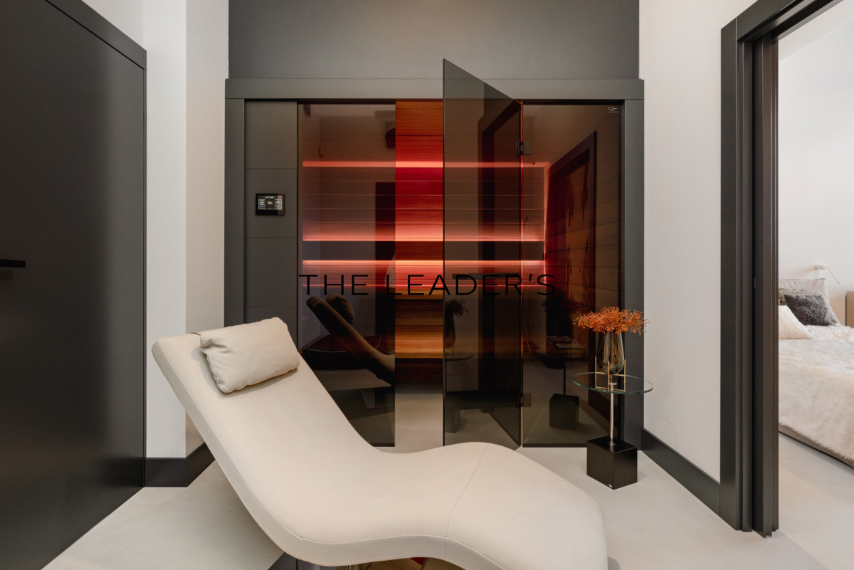 The apartment consists of an impressive living room combined with a dining area, which serves as the heart of the home and is an ideal space for daily relaxation and hosting guests. Adjacent to it is an elegant kitchen, equipped with top-quality Gaggenau appliances, as well as a functional pantry. The private area includes three bedrooms, including a master bedroom with a private walk-in closet, an en-suite bathroom, and direct access to a sauna.