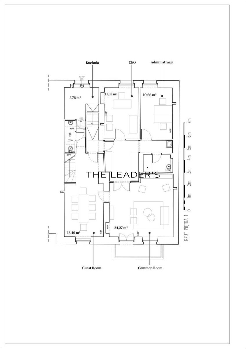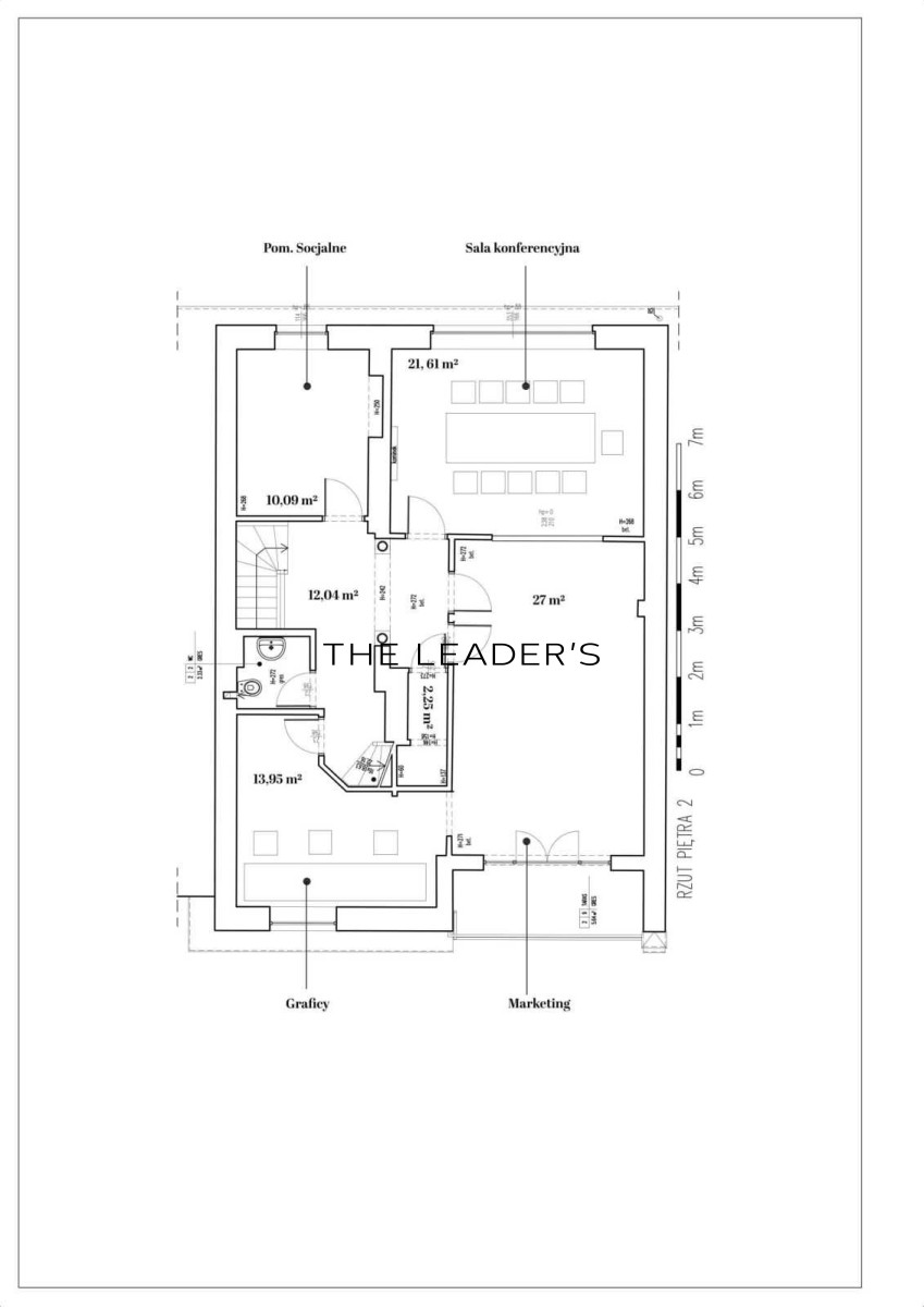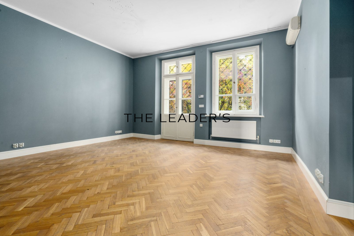 The house covers an area of 480 m2 and consists of 20 rooms and 8 bathrooms and has 4 above-ground and one underground level, i.e. ground floor, 1st floor, 2nd floor, utility attic and utility basement. It is adapted to running a business. It housed, among others law firm and showroom. The current condition does not require renovation or financial outlays. The property is unfurnished. The entire building is air-conditioned, thanks to which work on hot days is carried out in comfortable conditions. Behind the house there is a garden, which is treated as a place for spending lunch breaks. The advantage of the building are large windows and balconies, thanks to which the rooms are well-lit.