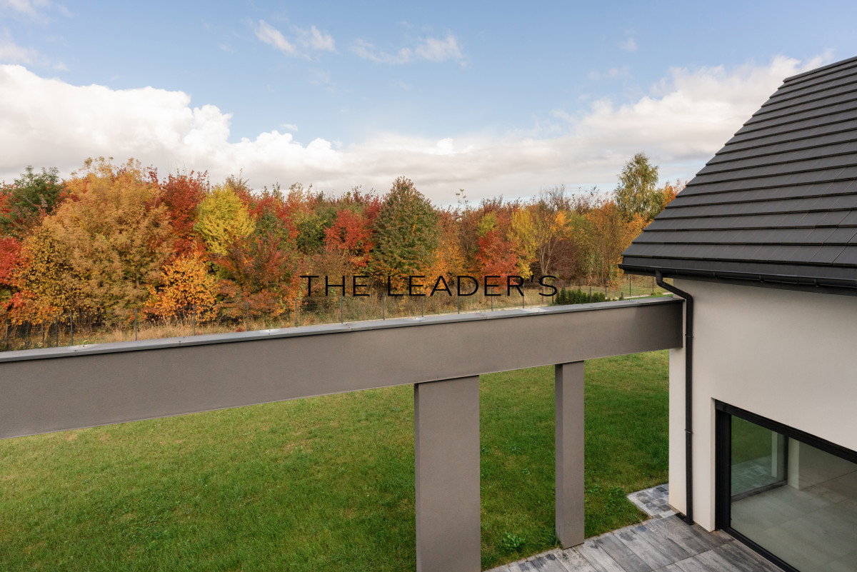 The house is spacious, and large, panoramic windows with exposure to all sides of the world provide beautiful interior lighting and views of the surrounding garden. The plot on which it is located to has an area of 1,300 square meters, and borders a strip of land belonging to a nature reserve, which guarantees privacy for the residents.