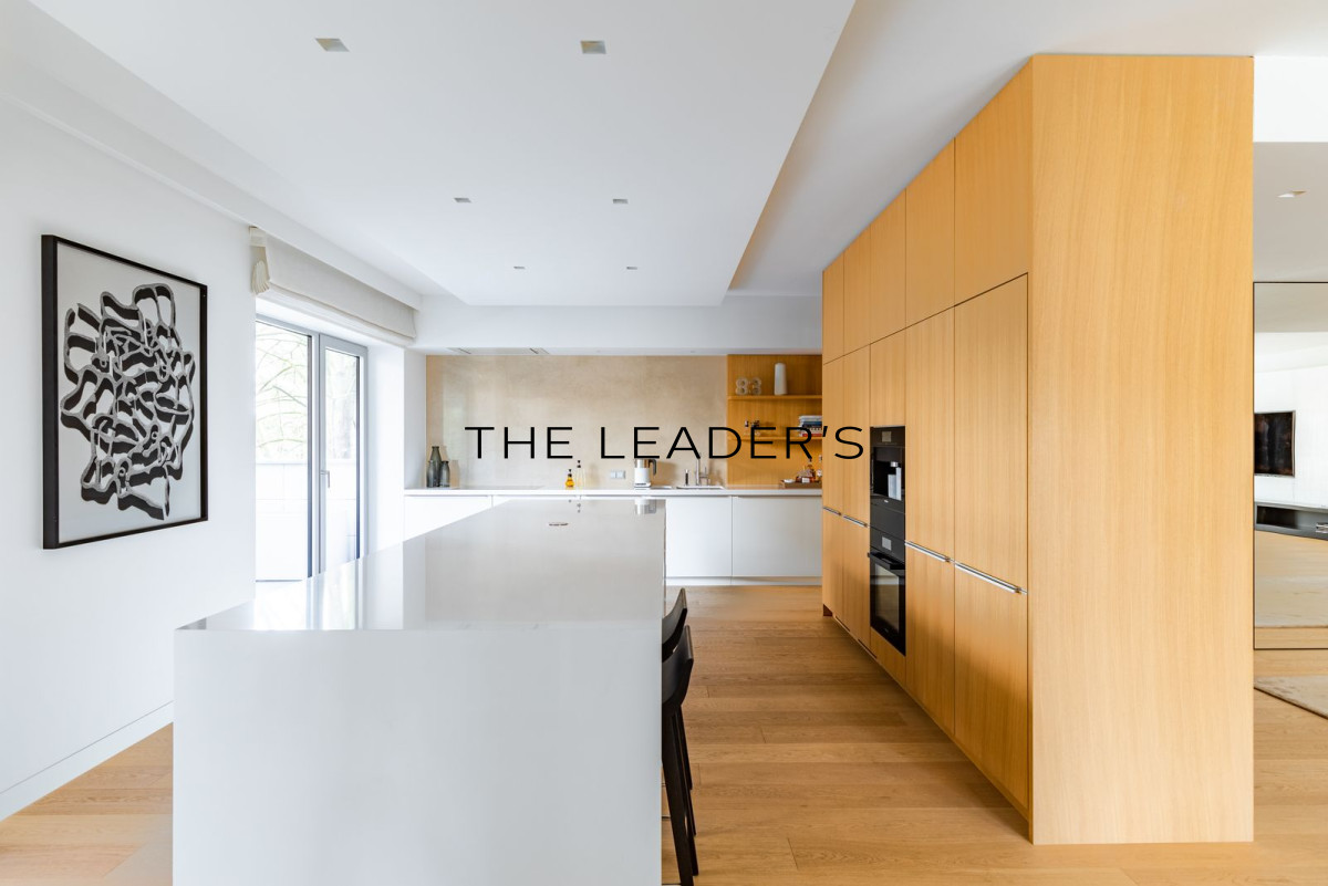 Nieruchomość została wykończona materiałami najwyższej jakości. Wnętrza zaprojektowała ceniona pracownia architektoniczna De Novo. Apartament jest pełen jasnych przestrzeni i naturalnych materiałów, które wprowadzają do pomieszczeń harmonię i spokój. Do wykończenia wykorzystano między innymi dębowe podłogi i naturalne kamienie.