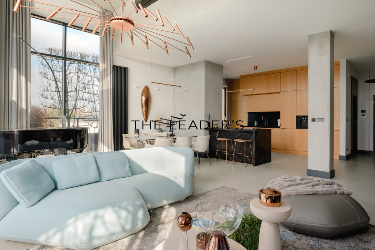 Całe wnętrze zostało zaprojektowane z niezwykłą dbałością o detale i wykończone przy użyciu materiałów najwyższej jakości. Naturalny brazylijski granit, szlachetne gatunki drewna oraz designerskie oświetlenie podkreślają jego wyjątkowy charakter. Apartament został również wyposażony w zaawansowany system inteligentnego domu.