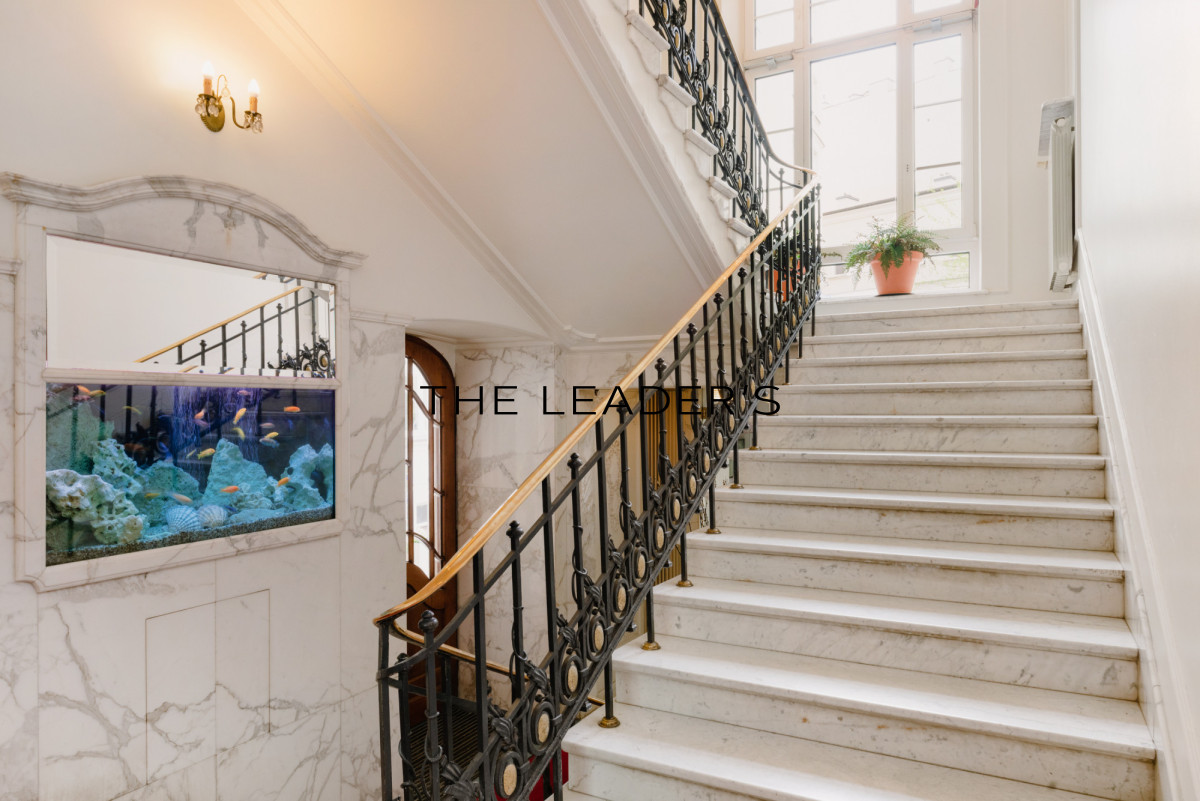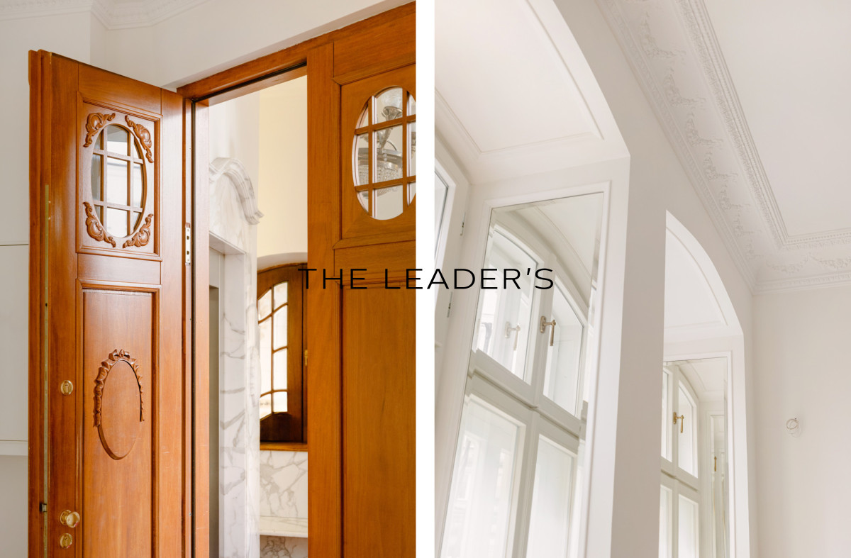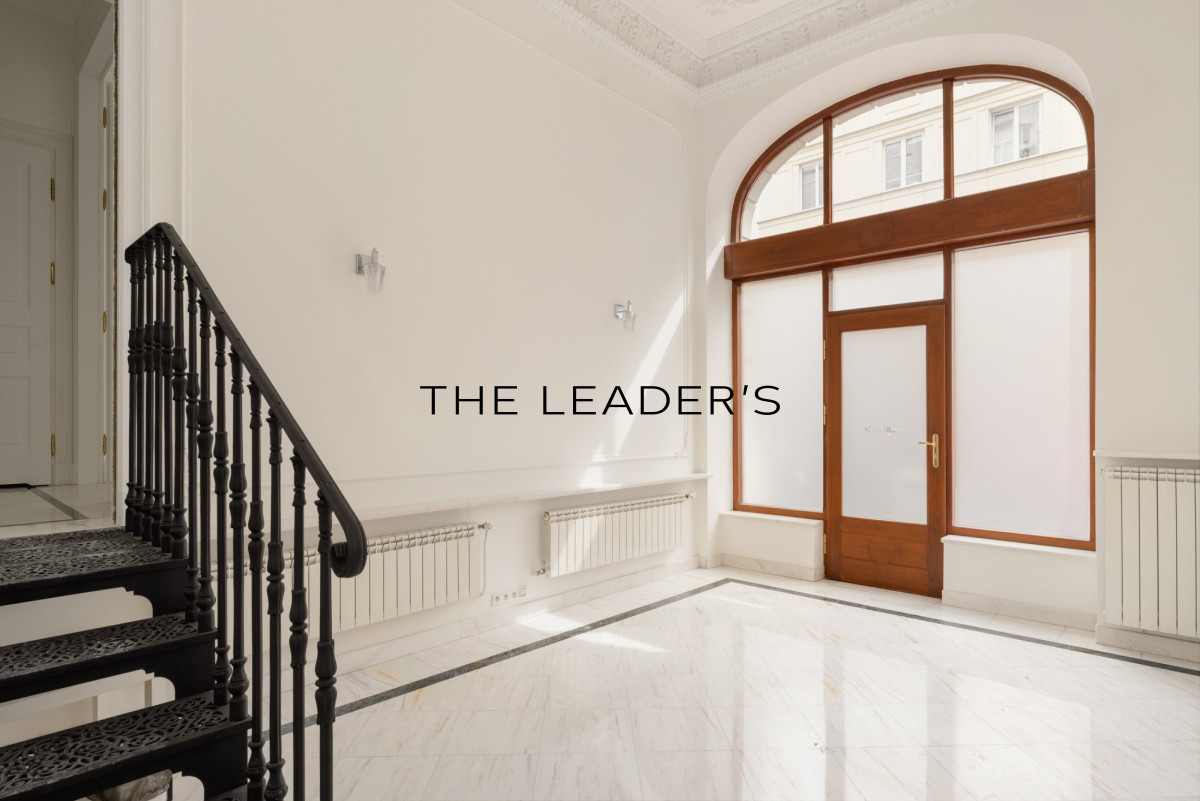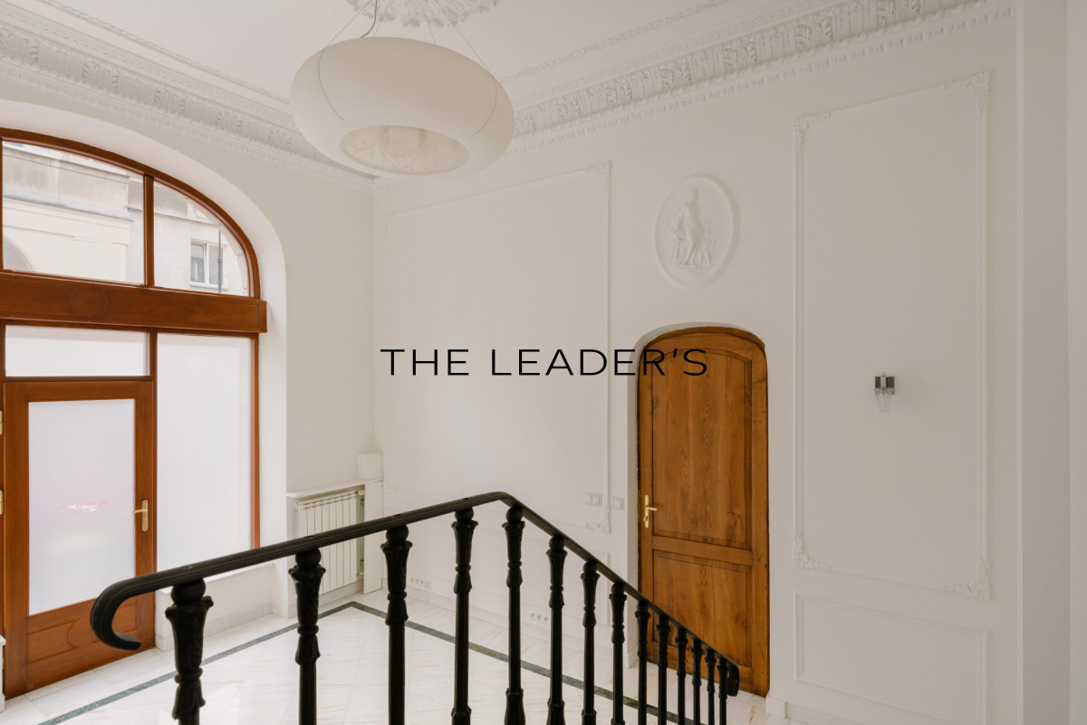 The unit is dual-aspect and benefits from excellent natural light thanks to its above-standard ceiling height of 3.5 meters. The office is located in a fully revitalized townhouse, which has been thoroughly adapted for office use. The space has been finished to a high standard—with elegant stucco on the walls and ceilings, marble window sills, and fully restored original wooden window and door joinery.