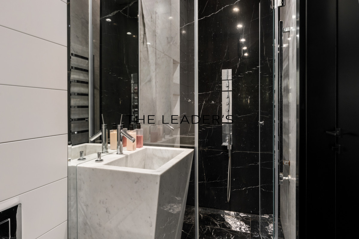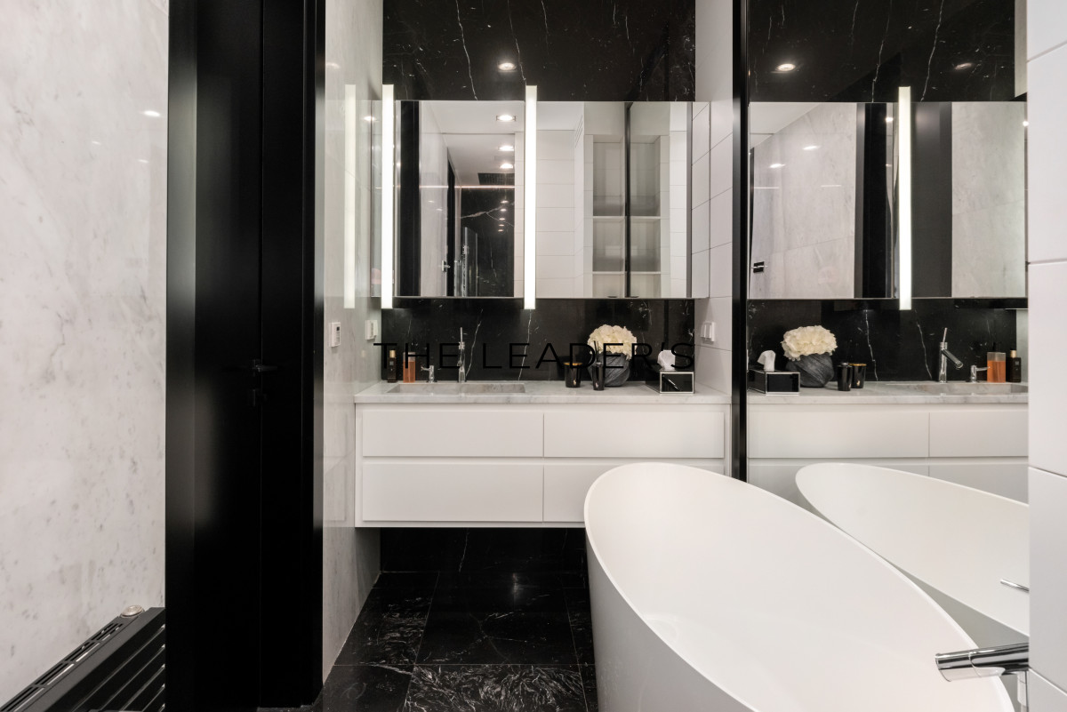 The apartment is equipped with Miele appliances (coffee machine, wine fridge, classic and steam ovens, microwave) as well as a large Liebherr refrigerator and freezer. The interiors are enhanced with exclusive furniture and lighting by Ralph Lauren, Gianfranco Ferré, Visual Comfort, and Eichholtz. Technical amenities include an intelligent system controlling lighting, underfloor heating, blinds and curtains, a sound system in every room, and air conditioning.