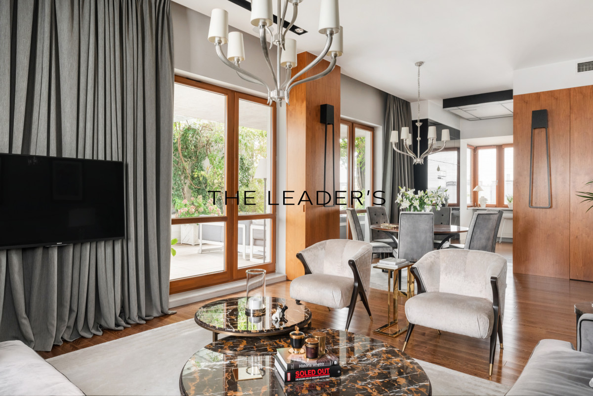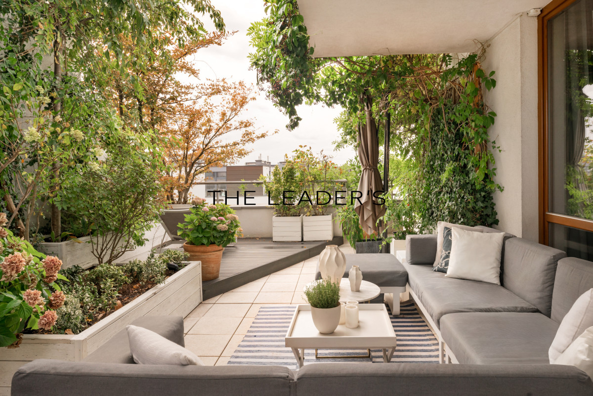 We present an exceptional penthouse with a terrace in the prestigious part of Miasteczko Wilanów, on Sarmacka Street.