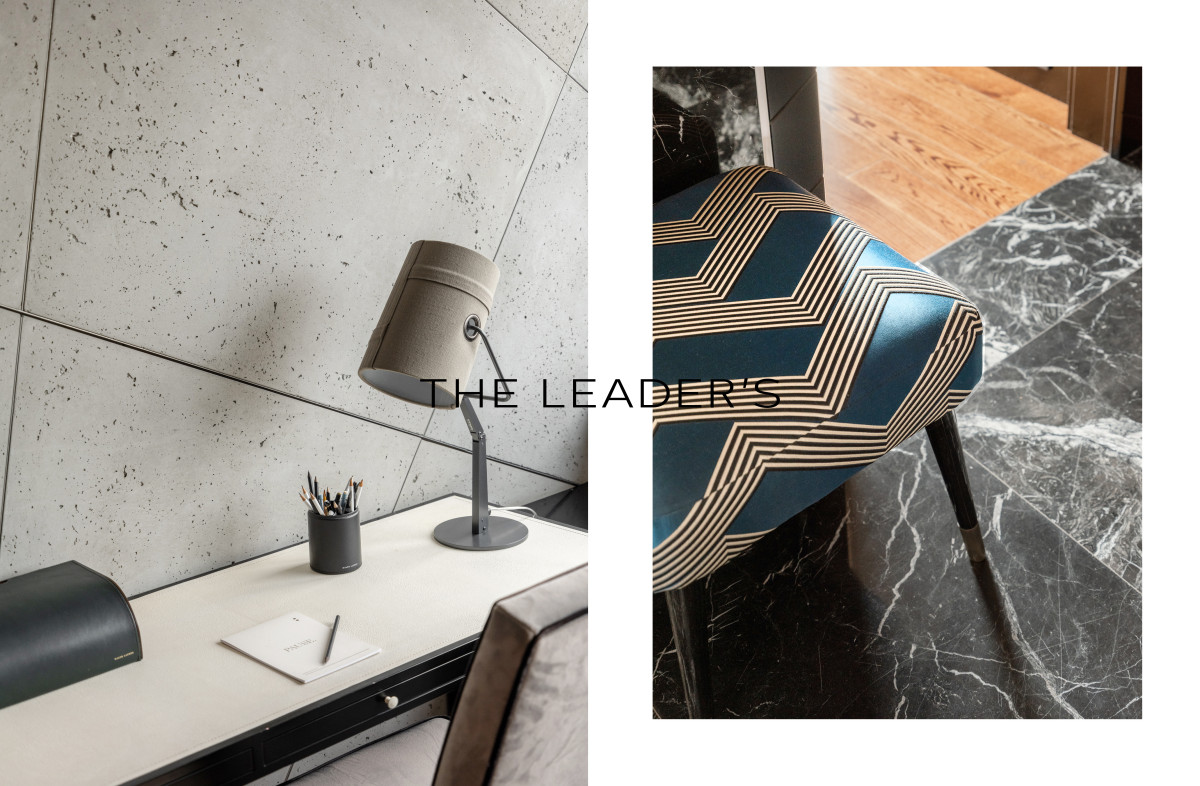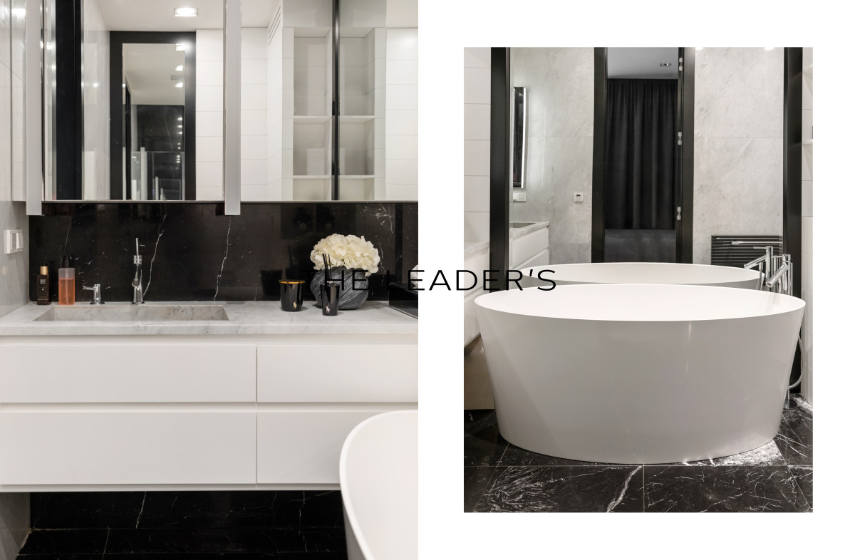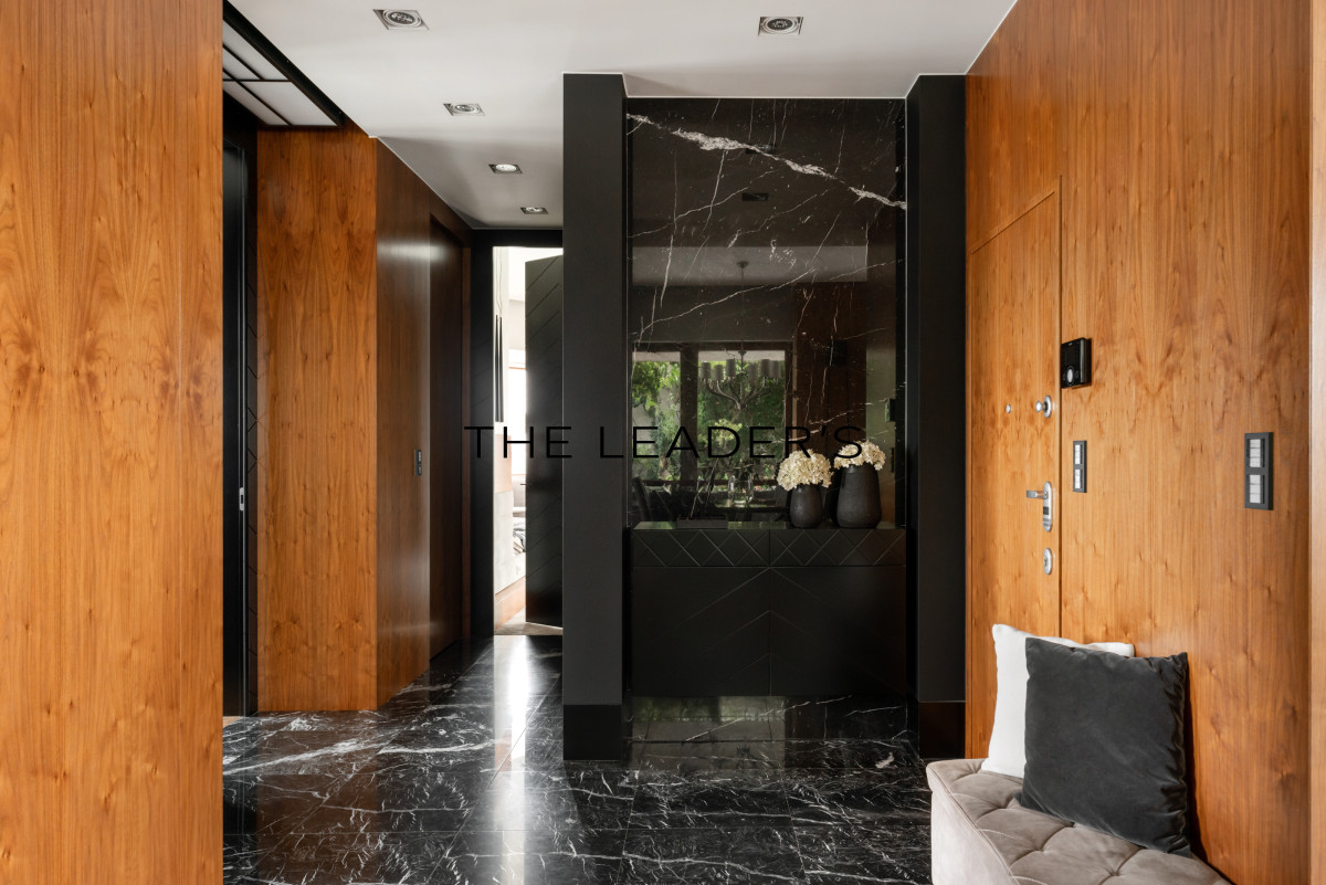 Wykończenie apartamentu utrzymane jest w standardzie premium. Drewniane podłogi i marmur, okładziny ścienne z forniru i betonu strukturalnego, a także łazienka w całości wykończona marmurem nadają wnętrzu elegancji i harmonii.