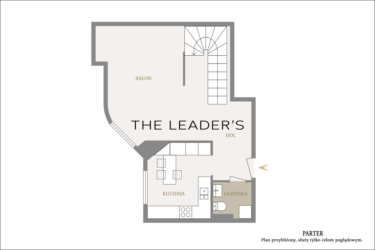 pierwszy poziom: przestronnego salonu z kuchnią, holu i toalety;