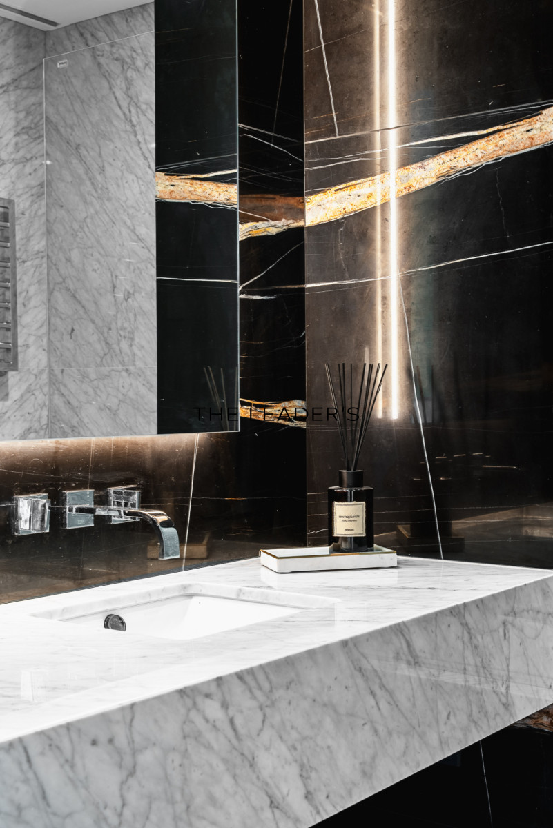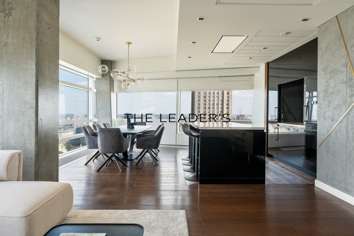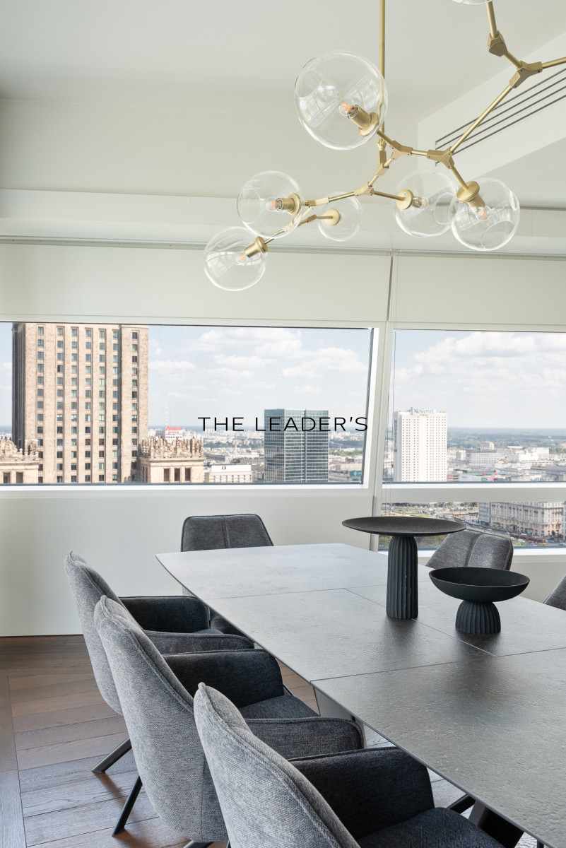 PROPERTYThe apartment has an area of 135 sqm. The living area consists of a living room combined with an open kitchen with an island and a separate dining area. The private part consists of 2 bedrooms, 2 bathrooms, a laundry room and a walk-in closet. The apartment has been finished with the highest quality materials and equipped with exclusive furniture and decorations. An extraordinary advantage of the apartment is the view of the Warsaw skyline, including the PKiN.