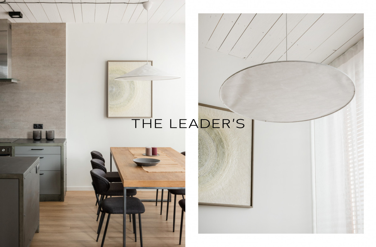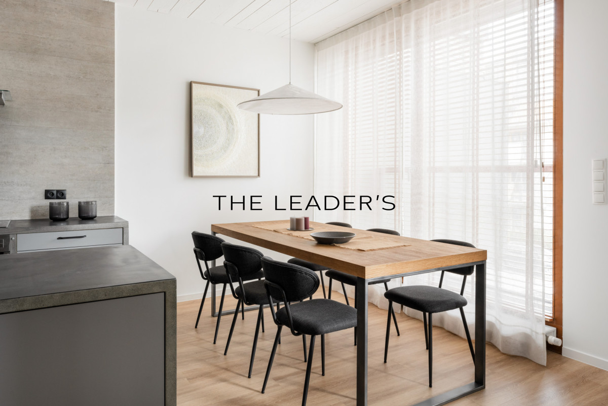 Część dzienna obejmuje przestronny, jasny salon stanowiący komfortową strefę wypoczynku. Nowoczesna kuchnia otwarta na salon harmonijnie łączy się z elegancką częścią jadalnianą, gdzie duży stół ustawiony przy panoramicznym oknie tworzy idealne miejsce do wspólnych posiłków. Z tej części apartamentu prowadzi wyjście na balkon, który stanowi naturalne przedłużenie strefy dziennej.