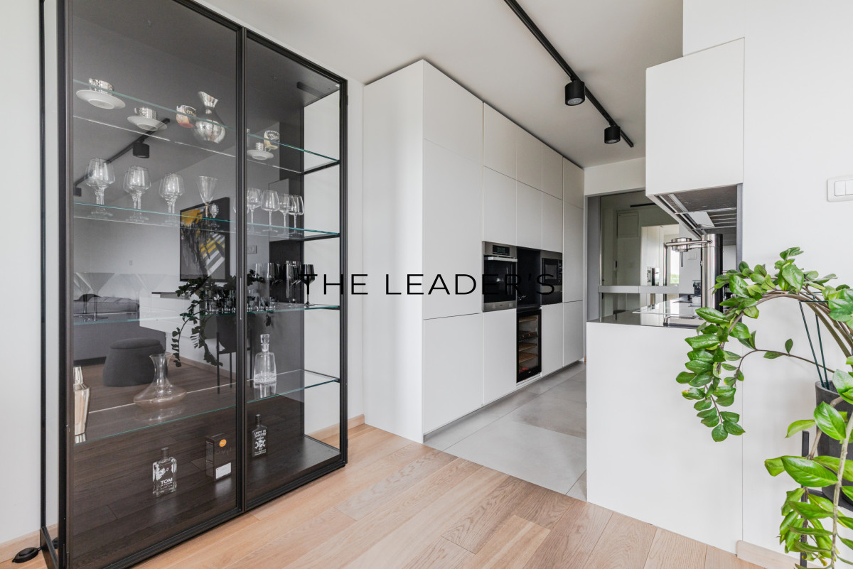 Wnętrze zostało wykończone w wysokim standardzie z dbałością o detale. Apartament jest dwustronny, z dużymi panoramicznymi oknami, które zapewniają doskonałe doświetlenie i widok na miasto.
