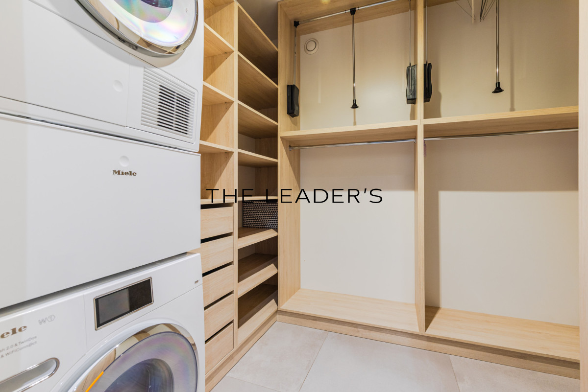• high-end household appliances: fridge, wine cooler, dishwasher, hob, oven, microwave, 77-inch TV, Miele washing machine and dryer.