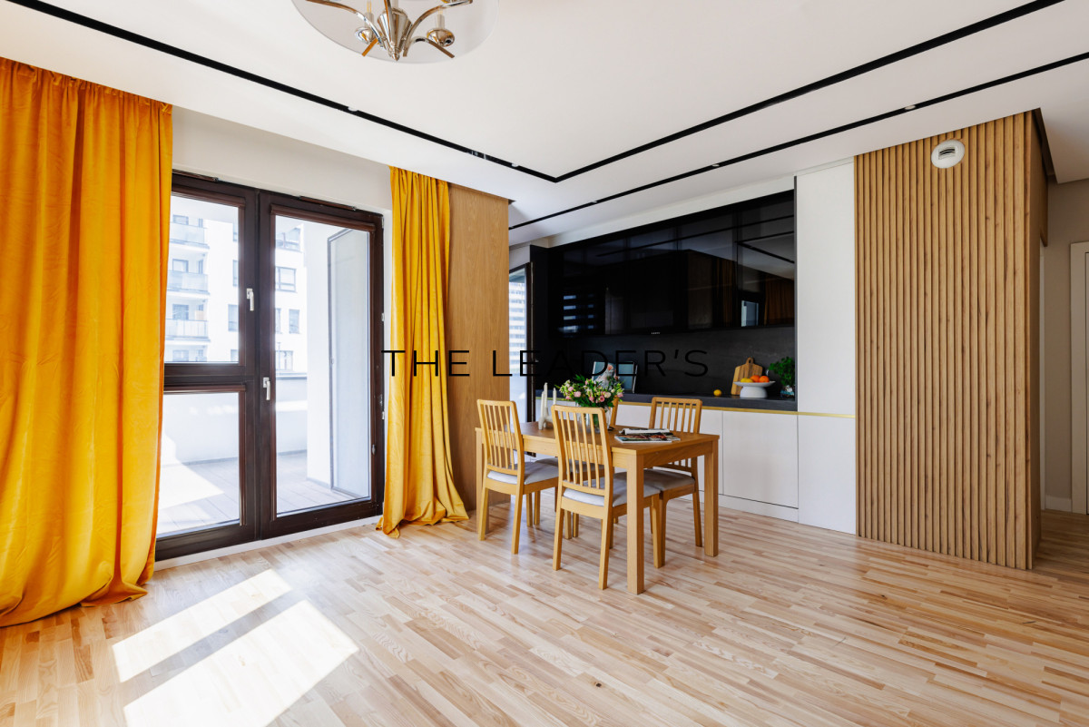 This featured apartment is located on the 1st floor of the modern City Link development at 34a Skierniewicka St. The 69 m2 area consists of well-adjustable rooms overlooking a quiet internal courtyard. The standout feature of the property is a massive 22 m2 terrace, serving as a perfect relaxation zone. The view of the peaceful, green patio inside the estate ensures exceptional comfort and privacy.