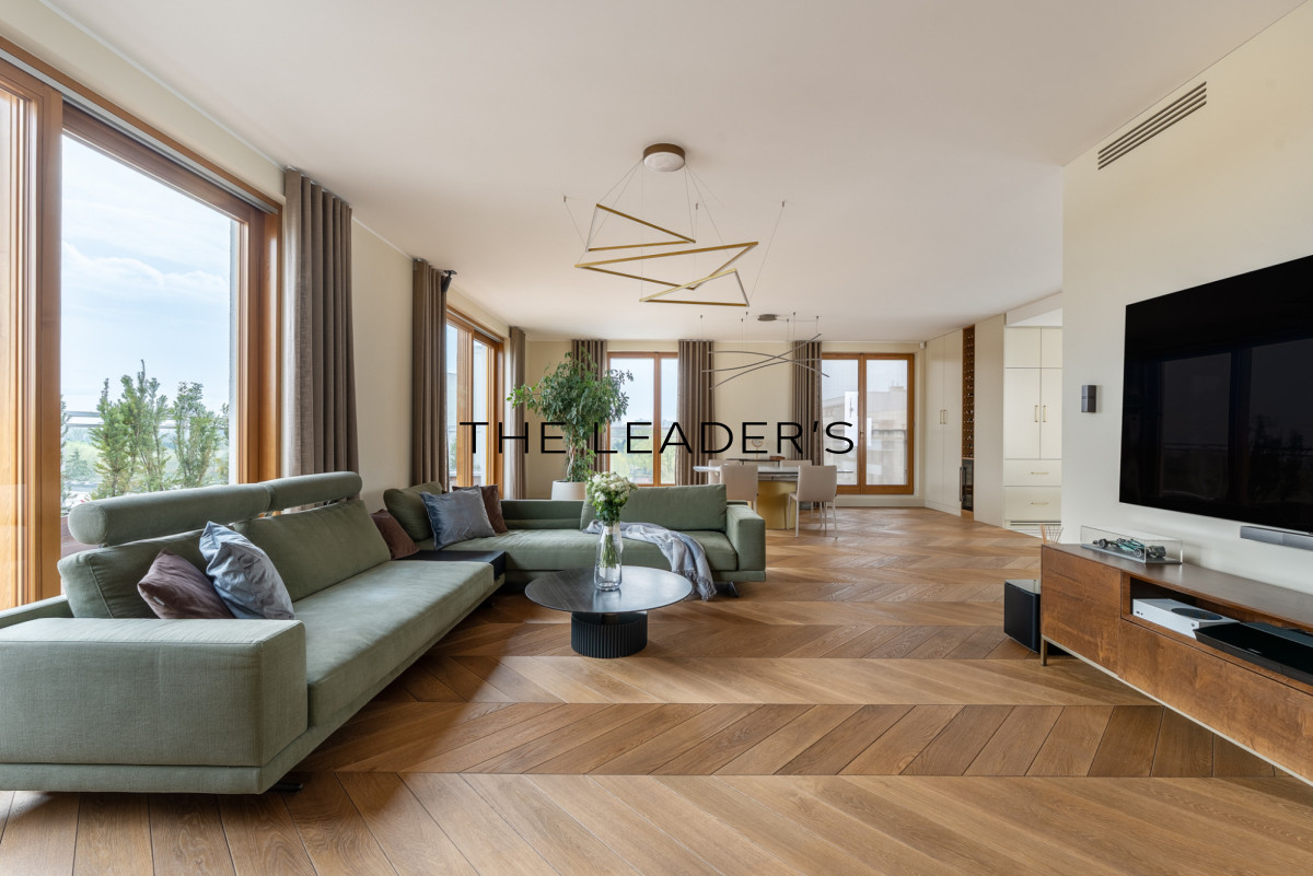 – oranżeria i dwa tarasy, jeden rozciągający się wzdłuż całego apartamentu;