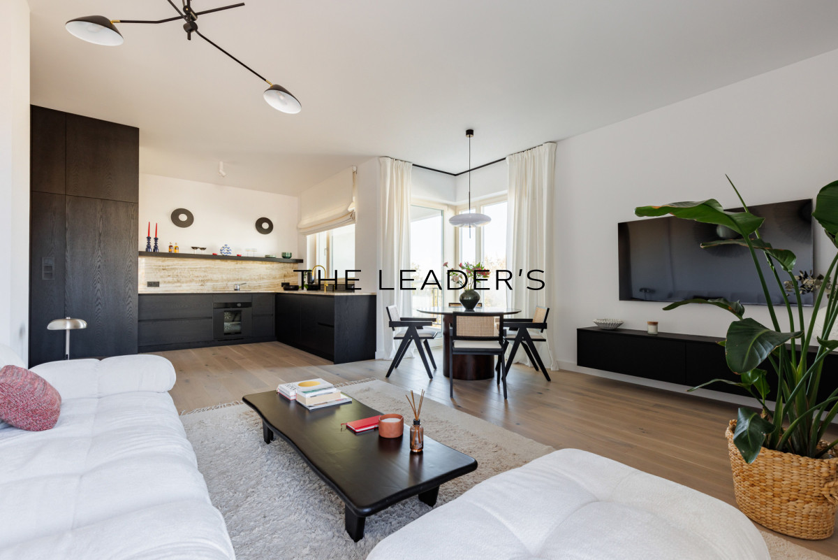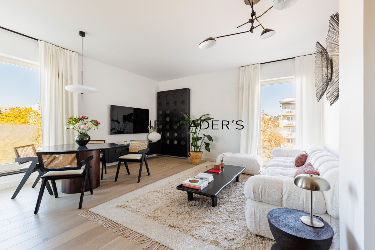 The apartment is located on the 3rd floor of an intimate development completed in 2024 in Warsaw’s prestigious Upper Mokotów district.