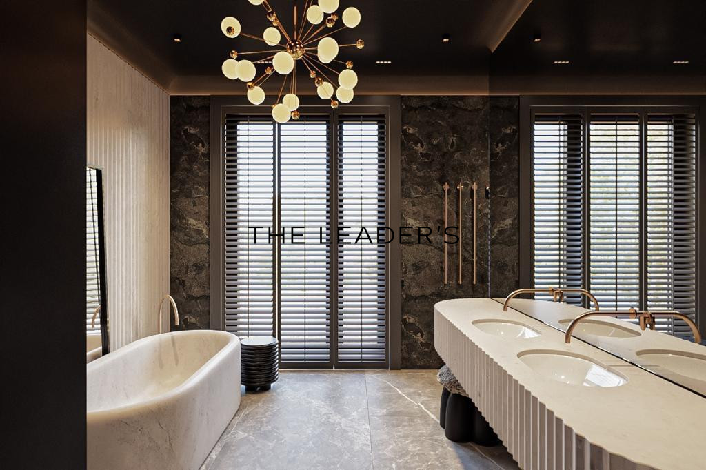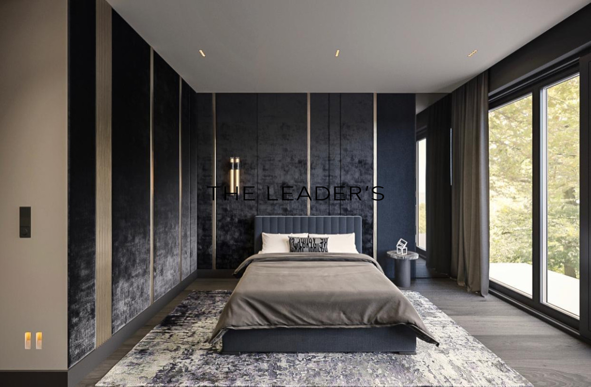 Wnętrze rezydencji zaprojektowano z myślą o maksymalnym komforcie i funkcjonalności. W skład nieruchomości wchodzi pięć sypialni z prywatnymi łazienkami, gabinet, pokój gościnny oraz przestronny salon z kominkiem i dużymi przeszkleniami, które zapewniają dostęp do