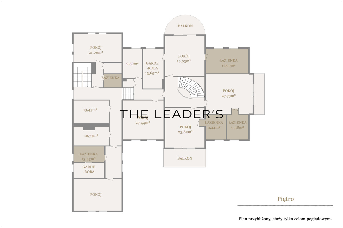 prywatnymi łazienkami. W drugiej części piętra znajduje się przejście do strefy gospodarczej, w której znajduje się
