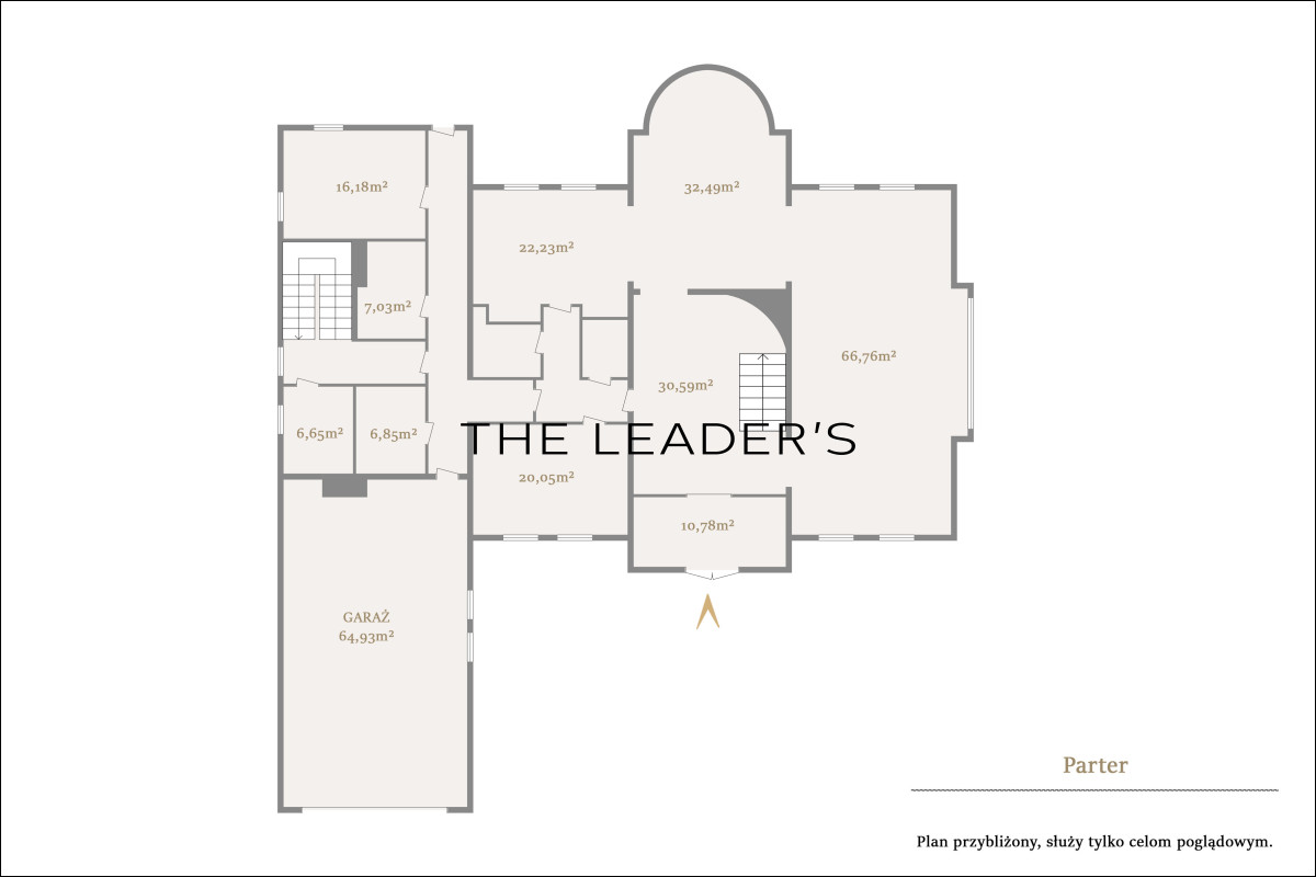 Na parterze znajduje się reprezentacyjny hol wejściowy z imponującą,