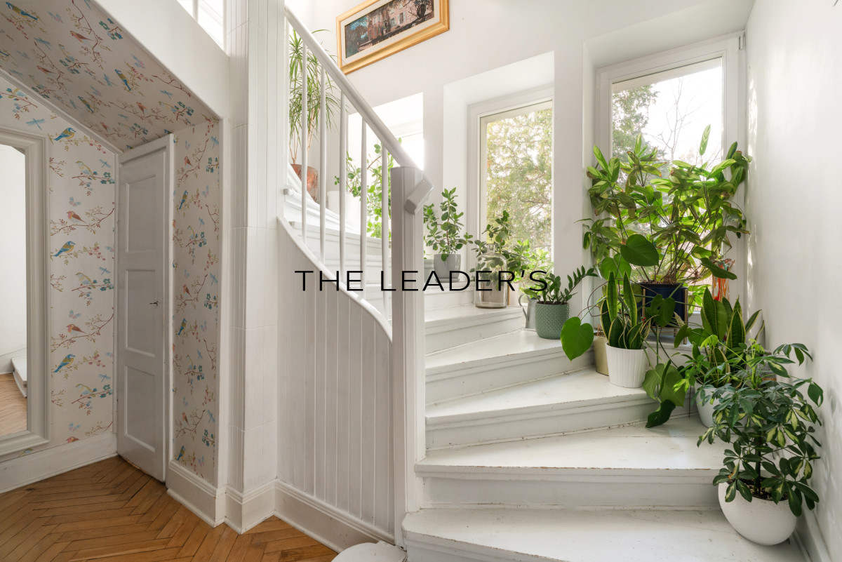 The classic villa, with an area of approx. 350 m², is located on a regular-shaped plot of 670 m² with a landscaped garden and beautiful old trees. The property includes a separate garage building and a long and wide driveway for additional cars right in front of it.