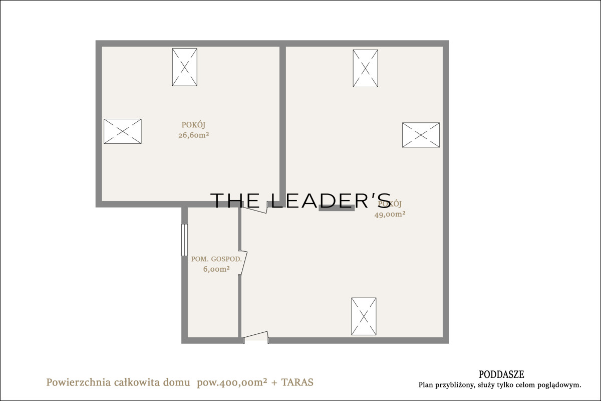 Nieruchomość składa się z 4 kondygnacji, wysokiej piwnicy, parteru, piętra i okazałego poddasza do własnej aranżacji.