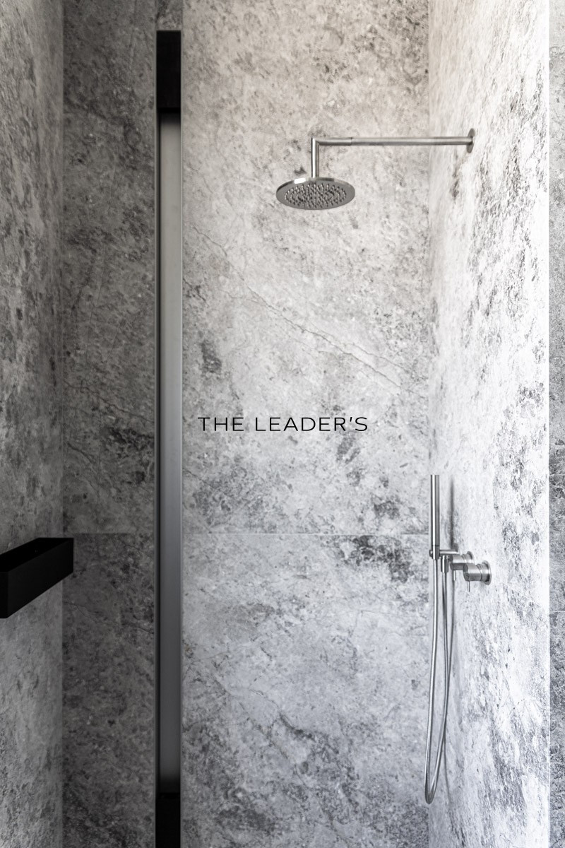 Łazienki wykończone w szlachetnym kamieniu łączą nowoczesność z przytulną elegancją, a część dzienna otwierająca się na
